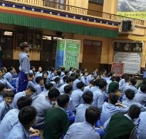 The “Secrets of Particles” exhibition toured different educational institutions, monasteries, and nunneries in Kangra. This exhibition in particular was prepared by the third cohort of monks as their collective project aDer the completion of the three-year leadership program. The intent of the exhibition is to educate about particles from Buddhist and quantum perspectives. The Kangra exhibition tour first toured for two days on September 11 and 12, 2023, at the College for Higher Tibetan Studies, Sarah. On September 13, the exhibition was displayed in Dolmaling Nunnery, followed by the exhibition at Gyuto Tantric Monastery for two days on September 15 and September 16. Two days of exhibitions were showcased at TCV Chauntra on September 18 and September 19. TCV Suja being our next destination, the exhibition featured for two days on September 22 and September 23. On September 25, the exhibition took place in Kirti Monastery, and we concluded our exhibition at Geden Choeling Nunnery on September 27.