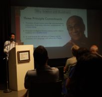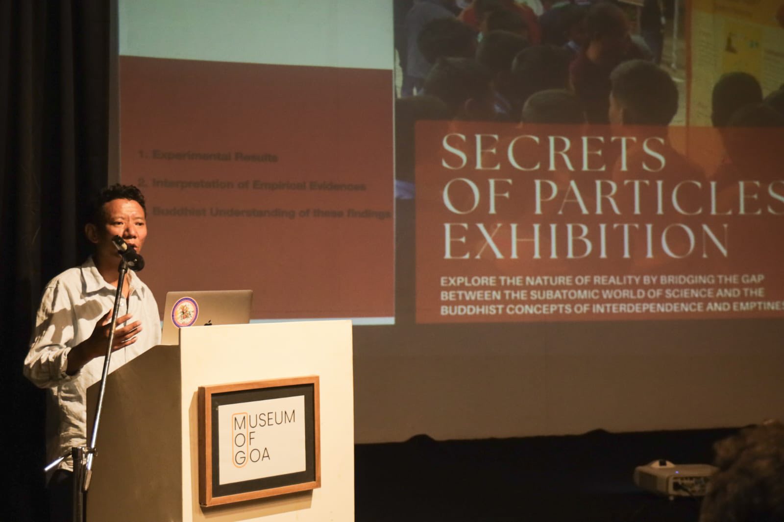 His talk focused on the vision of SFMN and The Secrets of Particles Exhibition, while exploring resonances between modern physics and classical Buddhist understandings of atoms and the nature of reality.